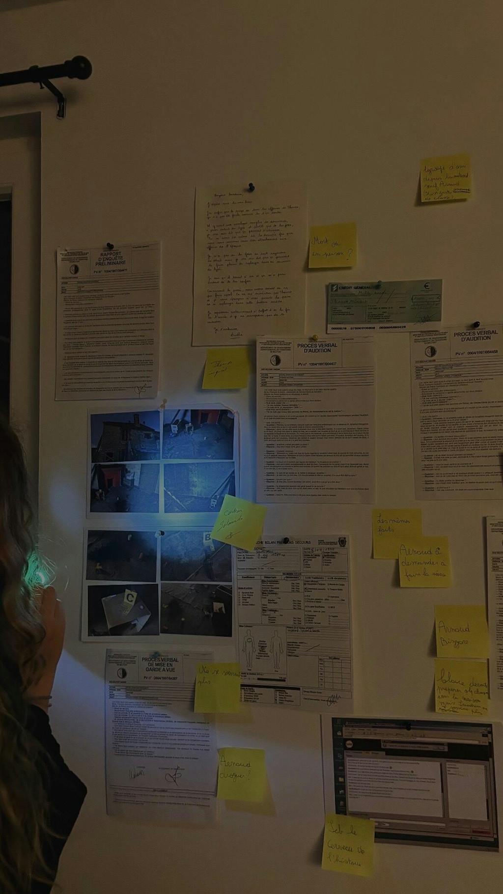Des photographies ou dessins Ce peut-être des images de la scène de crime, ou qui permettent de contextualiser l’enquête (chambre de la victime, photos personnelles, caméras de surveillance, schémas…)